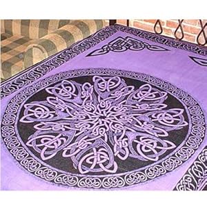 Product Description : Purple Celtic Knot Mandala Tapestry 72" x 108" 100% hand-loomed cotton 72" x 108" Twin Size. This tapestry can be used for a wall hanging, a table cloth, a bed spread, furniture throw, curtains, altar cloth, hung from the ceiling, home decor, and more