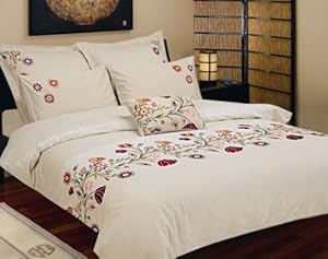 Product Description : Bring home the luxury of a beautifully embroidered Duvet Cover set. Inspired by a Folkloric Belarus design. The Duvet Set is embellished with dense multi-color embroidery, combined with a background of printed silhouettes on both front and reverse sides. All our bedding sets and sheets are machine washable. As they are 100% natural fibers, please carefully wash them using mild detergent to avoid damage and shrinkage. Its important to know that for good results wash on cool and dry on low. We recommend that you wash the bedding set separately on cool on a delicate cycle. Always wash the bedding set inside out to protect the delicate embroidery and thread work. Drying and Ironing Instructions All our bedding sets and sheets also iron well, if you are concerned about wrinkling. The larger sheets and duvet covers are a bit difficult to iron so you can choose to line-dry to avoid that problem. If this is not possible, second best option is to fold once and hang your sheets over the curtain rod. The weight of the water in the fabric after washing will pull out most wrinkles. Another important point to keep wrinkling to a minimum is to remove your sheets from the dryer as soon as possible. The longer it stays crumpled up in the dryer, the more wrinkled it will become. We do recommend that you iron your bedding set and sheets to keep them in nice form. The material is pure 100% Egyptian Cotton so it is not blended with any other man-made fabrics. With 100% natural fibers, Ironing is required to pull out wrinkle after washing and It also improves the life-span of the Item. Fabric Softeners They can coat the fibers of the sheets and bedding to some extent and it can affect the natural feel. Mostly people do not worry this much as fabric softeners do keep fabric soft, but it is important to take into account when deciding whether to use softeners. Bleach is not recommended for the bedding sets and sheets.