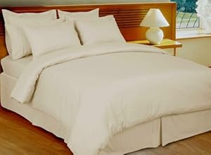 Product Description : Wrap yourself in the Softness of the luxurious Egyptian cotton Beddings found in World Class Hotels. The ultimate in Bed in a Bag, these fine luxury bed linens are crafted from long staple Giza cotton grown in the Lush Nile River Valley since the time of the Pharaohs. Comfort, quality and opulence set our luxury bedding in a class above the rest. Elegant yet durable, their softness is enhanced with each washing. Each and every bed in a bag comes along with a white Down Alternative Comforter. Luxury and soft as real Down, but hypoallergenic. Made from very thin & fine Micro-Fiber yarn, it look and feel like real down, yet it's Machine washed unlike Real-Down-Ones. This item has a duvet cover which can be easily washed many more times than regular comforter. This Luxury Solid Egyptian Cotton Down Alternative Ivory Sateen Stripe Bed in A Bag Features Total of 8 PC Set: * Royal Tradition Brand *1Sateen Stripe Duvet Cover, 600 Thread count 100% Egyptian cotton. *2Matching Pillow Shams, 600 Thread count, 100% Egyptian cotton *1White Down Alternative Comforter, cover 300 Thread count Microfiber *1Fitted Sheet, 600 Thread count, 100% Egyptian cotton *1Flat Sheet, 600 Thread count, 100% Egyptian cotton *2Pillow cases, 600 Thread count, 100% Egyptian cotton 8PC Queen Set Includes: 1Full/Queen Down Alternative comforter (90x90" White) 2Standard Pillow Shams 20x26" 1Full/Queen Duvet Cover 1Queen Fitted Sheet 1Queen Flat Sheet 2Standard Pillow Cases